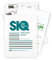 SIQ Introductory Kit includes SIQ Professional Manual, 25 each of the SIQ and SIQ-JR Hand-Scorable Answer Sheets, and Scoring Keys for each.